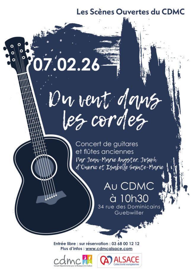 Le samedi 7 février à 10h30, venez partager un moment musical pour guitares et flûtes anciennes avec Jean-Marie Angster, Joseph d’Onorio et Isabelle Sainte-Marie dans la partothèque du CDMC à l’occasion de notre scène ouverte. Des trouvères du XIIIè siècle jusqu’à Manuel de Falla, en passant par Josquin des Prés et Haendel, les multiples facettes…