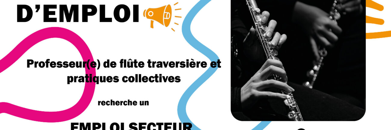 Missions – Tâches : Enseignement hebdomadaire de la flûte traversière et pratiques collectives – Horaires de travail : vendredi à partir de 16h30 (à définir ensemble) – Types d’élèves : débutants et élèves de cycle 2 Profil recherché – Diplôme : Diplôme de Conservatoire – Expérience souhaitée : Débutant motivé accepté – Compétences particulières :…