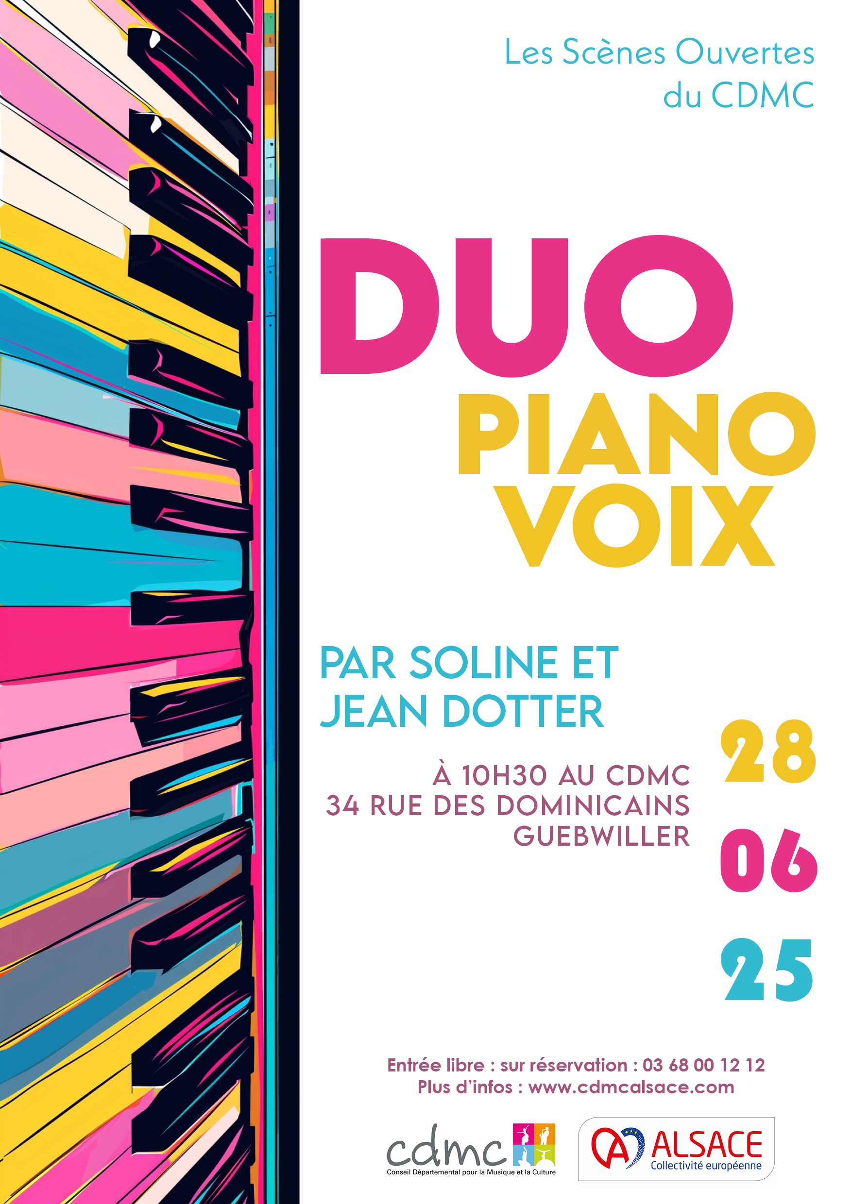 Venez découvrir Soline et Jean Dotter pour un duo père-fille, piano-voix, lors de la scène ouverte du samedi 28 juin à 10h30 à la médiathèque du CDMC.